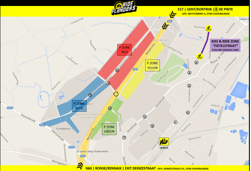 - Access route GPS: Lindestraat 2, Oudenaarde (follow signs Parking inschrijvingen)
